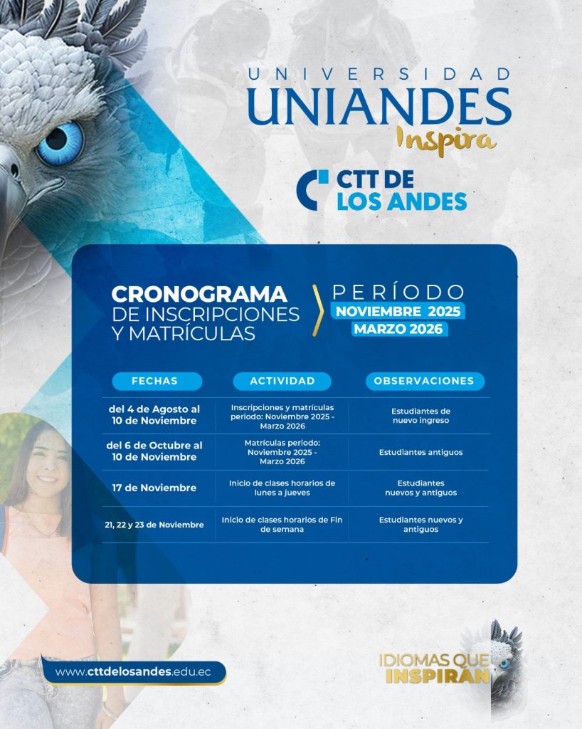 CTT de los Andes Language Center, además de preparar para el examen TOEFL iBT, es centro acreditado para evaluar dicho examen debido a que cumple con todos los estándares de calidad requeridos por ETS (Educational Testing Service), compañía creadora del examen TOEFL iBT al mismo tiempo somos centro examinador de Pearson VUE. Trabajamos con editoriales del más alto nivel como son NAT GEO Learning, y CAMBRIDGE. Nos manejamos con el marco Común Europeo que es el que gobierna nuestra educación en el país, y apegados a todo reglamento.
